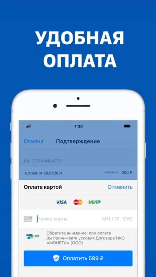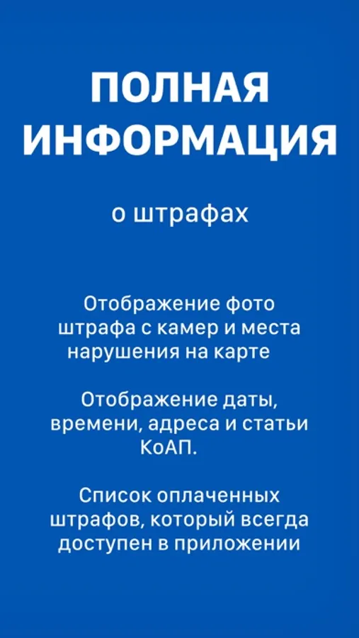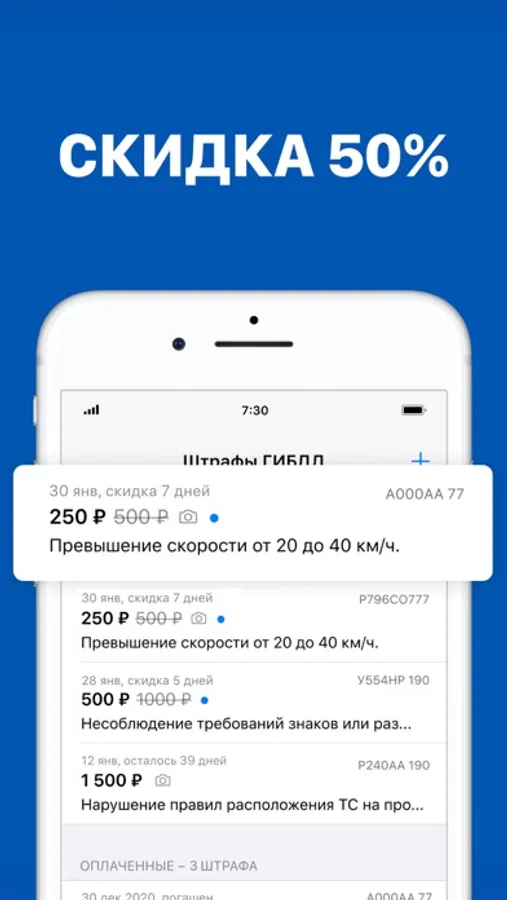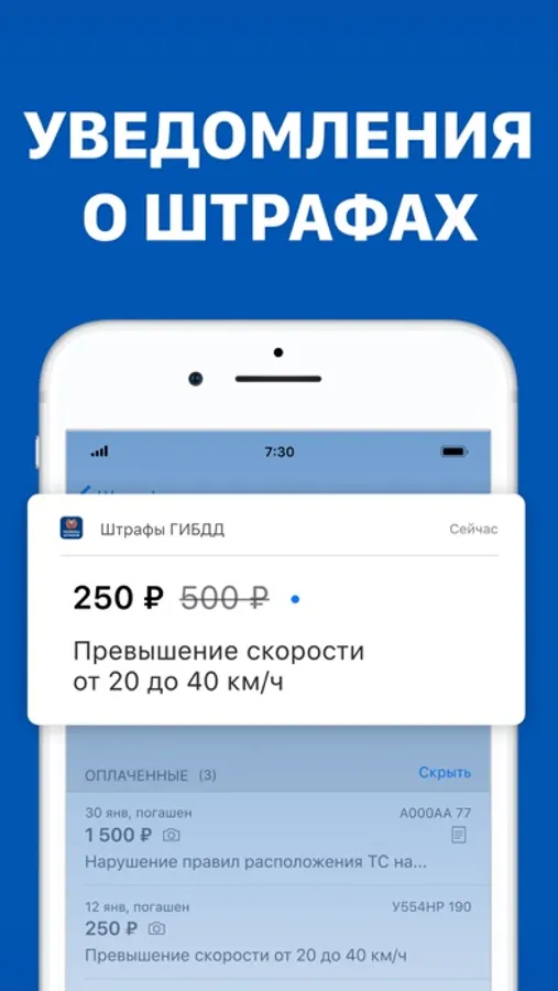 - своевременные уведомления о новых штрафах, чтобы вы не пропустили скидку 50% на оплату