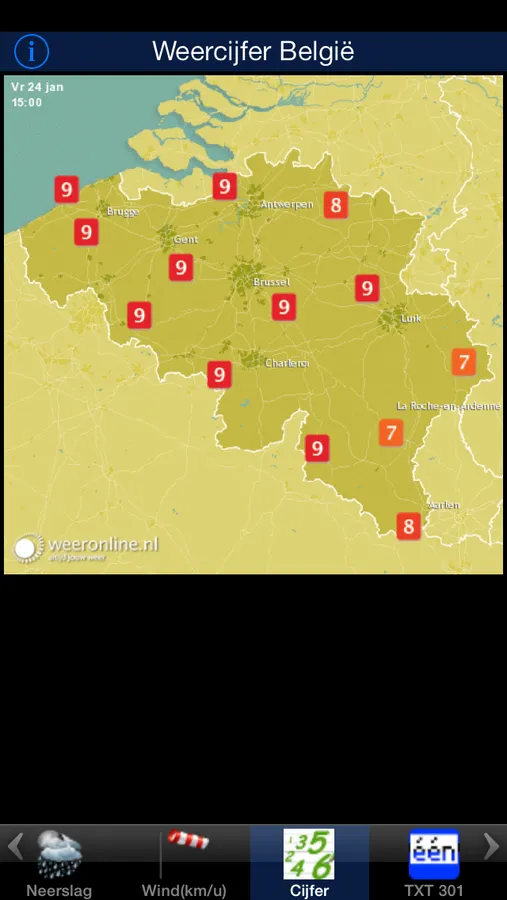 Deze weer app is zonder ingewikkelde menu opties en/of keuze mogelijkheden, zoals je het eigenlijk ook van een Weer-app mag verwachten.