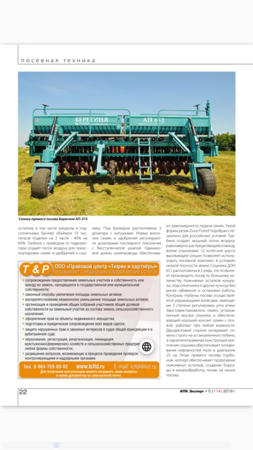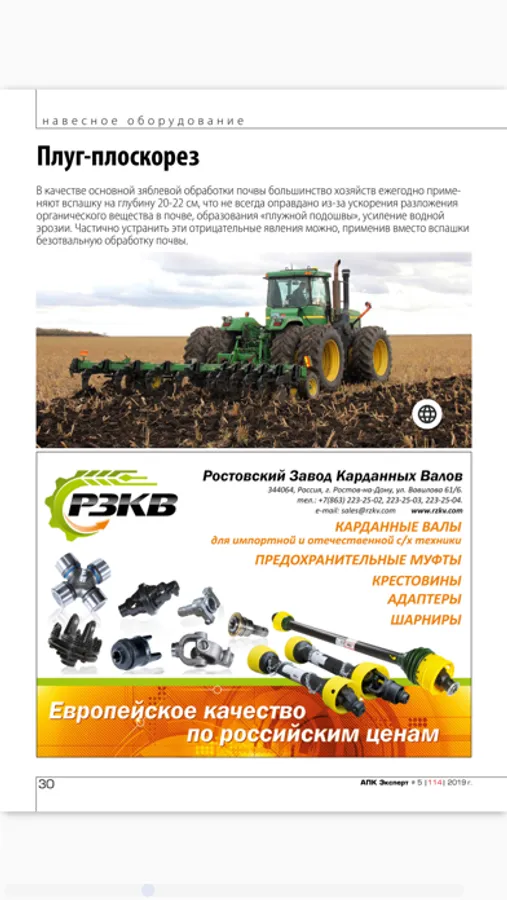 В журнале содержится тематическое разнообразие публикуемых материалов по всем cегментам сельскохозяйственного рынка, полнота мониторинга рынка, оперативность данных и достоверность предоставляемой информации позволит Вам быть в курсе последних событий и ориентироваться во всех областях сельского хозяйства.
