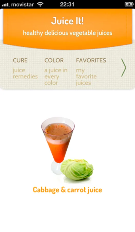 To ensure your intake of nutrients is as varied as possible, the app divides the juices in different colors.