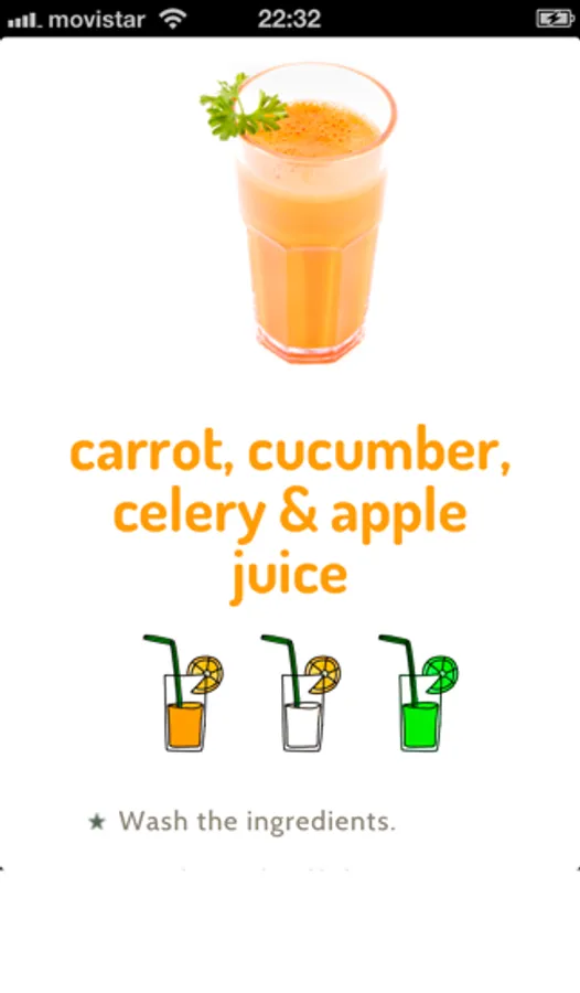 For each juice the app describes clearly how to prepare the juice, its ingredients, its nutritional values, RDI and the diseases and illnesses each juice can help to prevent.