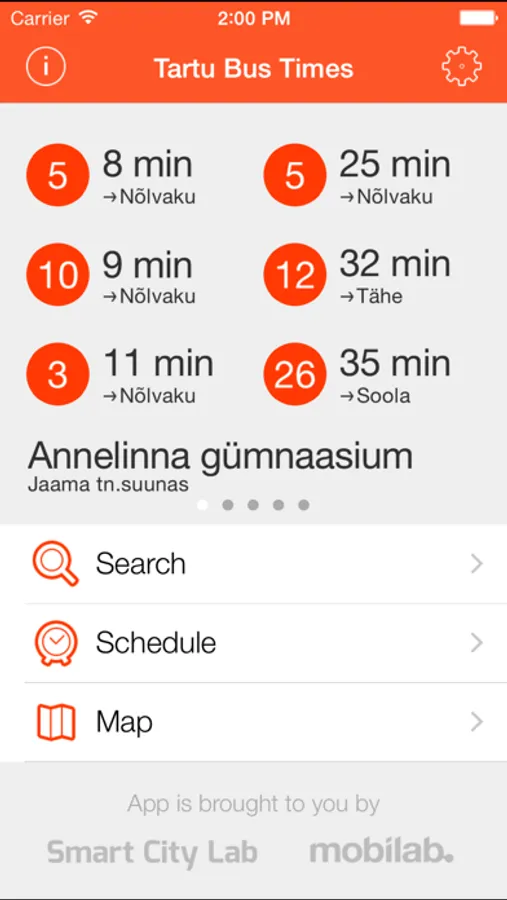 * võrguühenduse olemasolul näha busside väljumisi reaalajas;
