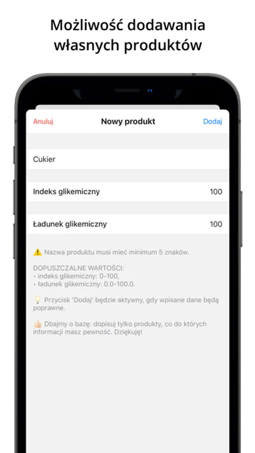 Czegoś brakuje? Od tej wersji apka oferuje możliwość dodania własnych produktów!