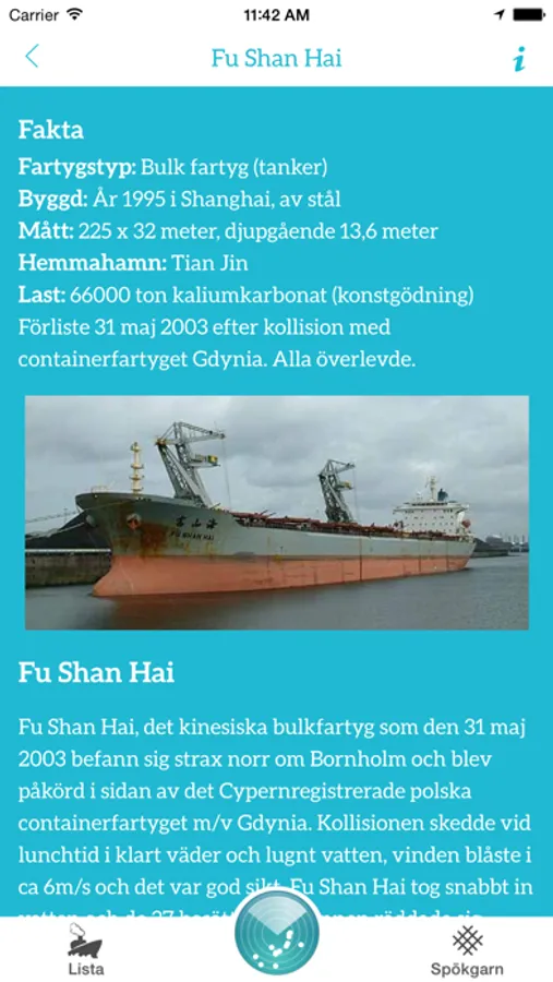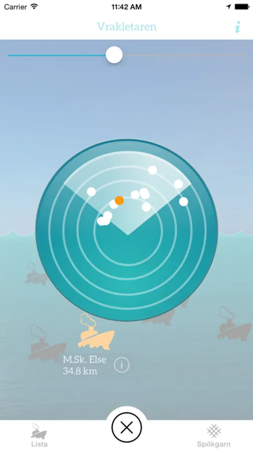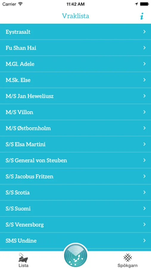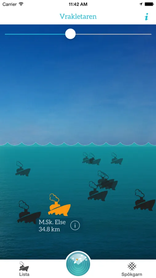 Search for information in the list if the vessel or find the wrecks using the app's built-in virtual search function (Augmentet Reality) which uses the phone's camera.