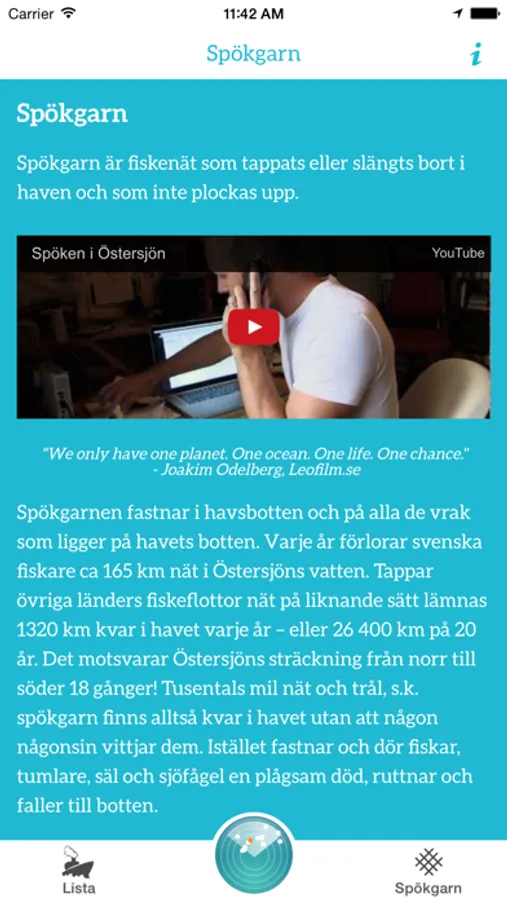 The app also displays text and linked films Information about ghost nets; fishing net caught in the wreckage and harms marine life in the Baltic Sea and pose a danger to divers.