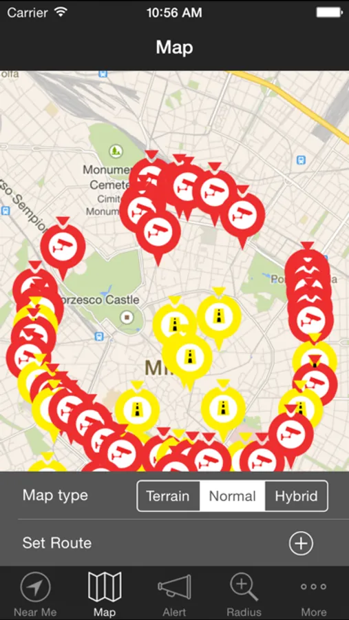 showing you automatically on the map the cameras,the days and times of entry areas. The application knows at any moment where you will find the various cameras,
