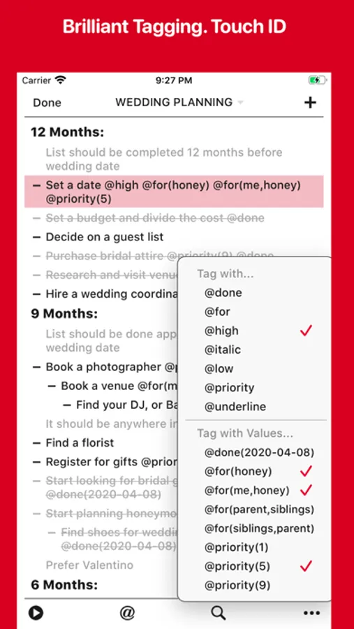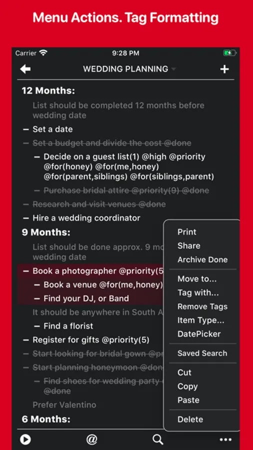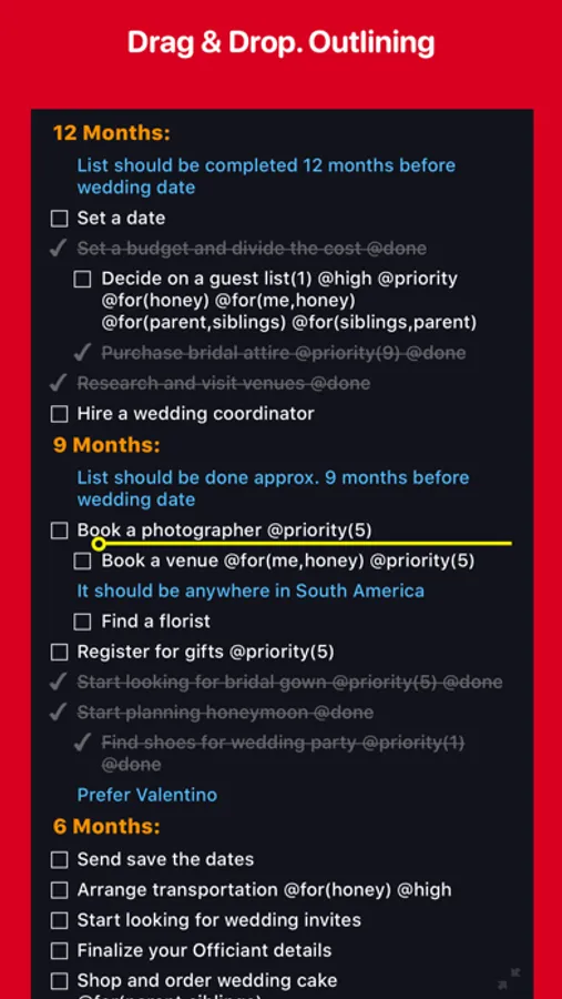 • Support Outlining. Drag & Drop items from another app and vice versa.