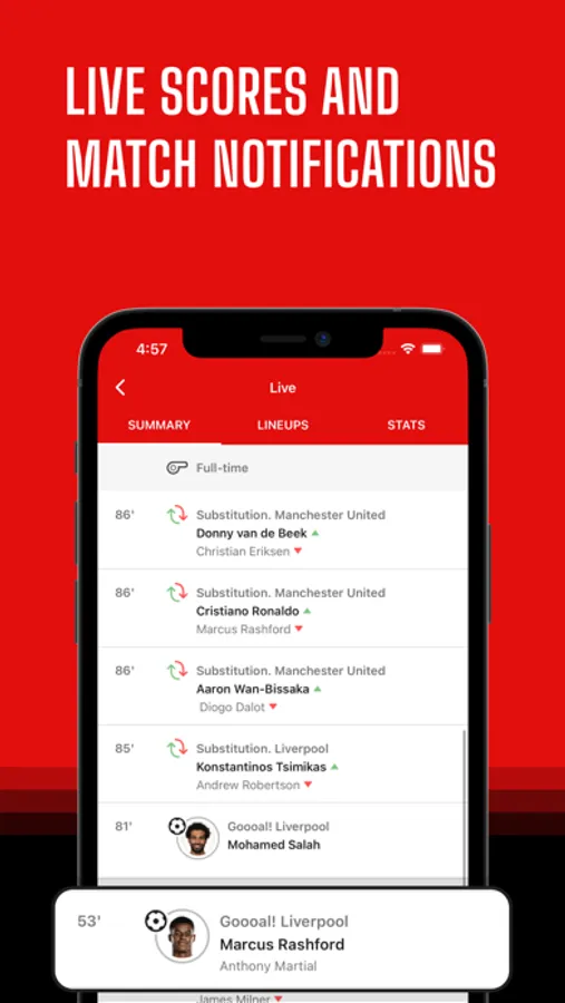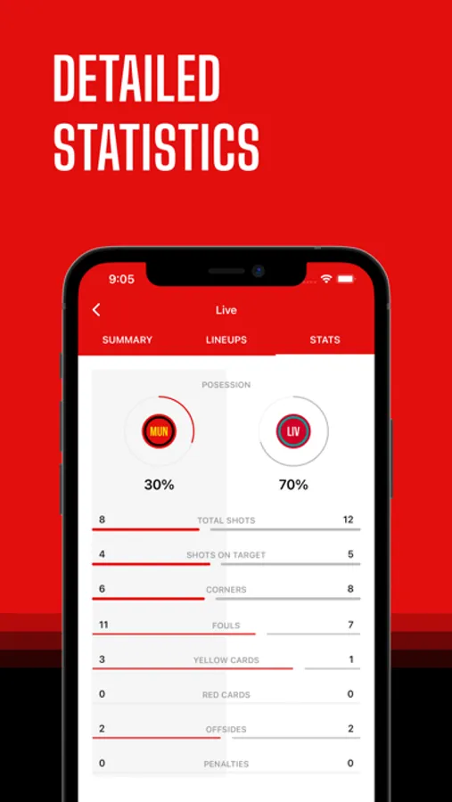 √ Your own push notifications for top news, starting lineups, kickoff, goals, yellow and red cards, results. Silent mode is available as well.
