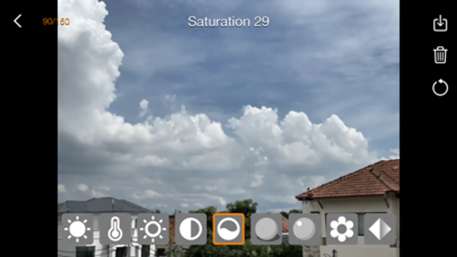 • Edit Exposure, Temperature, Brightness, Contrast, Saturation, Shadow, Highlight, Vibrance, Sharpness and Blur level by touch and slice.
