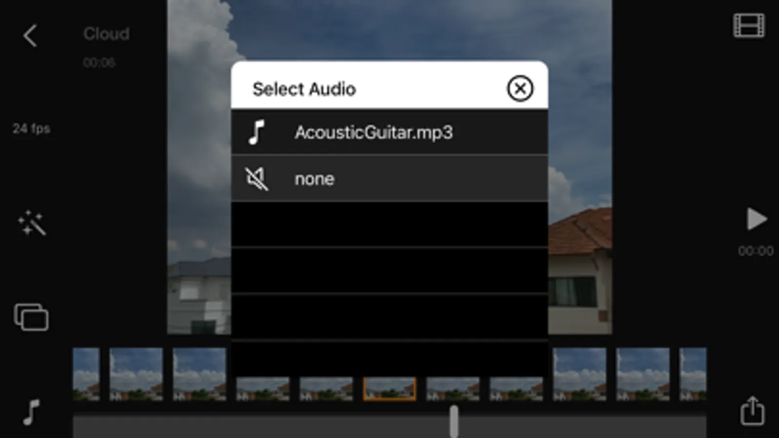 • Add sound into project, sound are place into Files App > Time Lapse > Project Name > Audio folder.