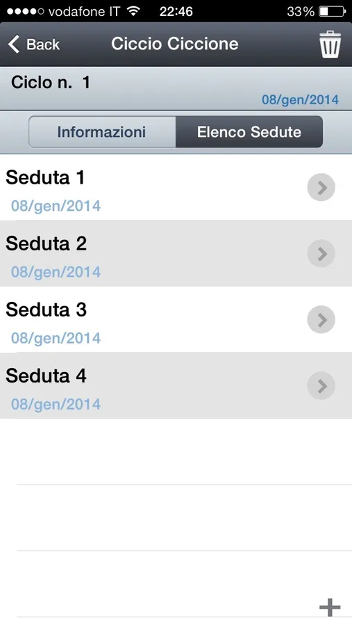 Once a new patient is created, you can add a new cycle where you can specify the area of the body that will be object of treatment and the medical history.