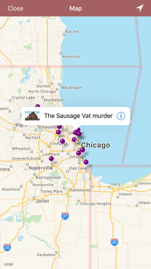This creepy app provides a catalog of 437 famous crime scenes in the United States. Serial killers, assassinations, massacres, gangsters, etc.