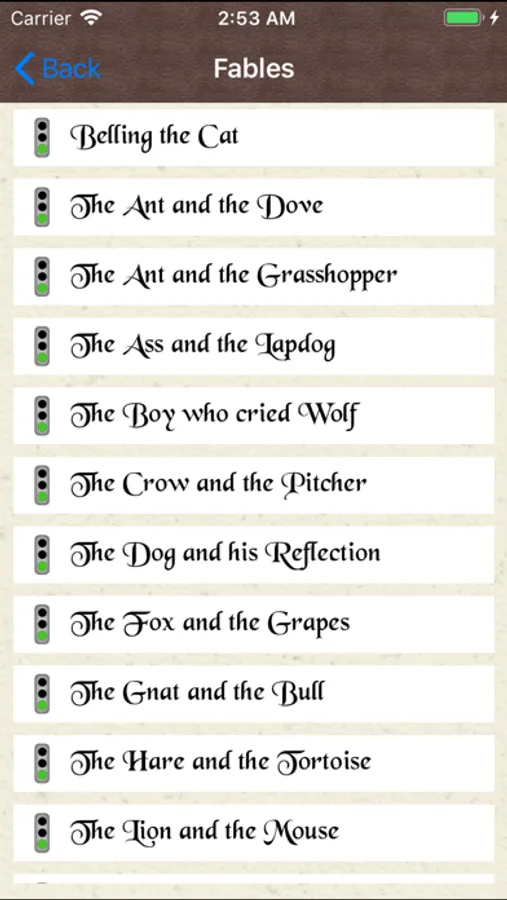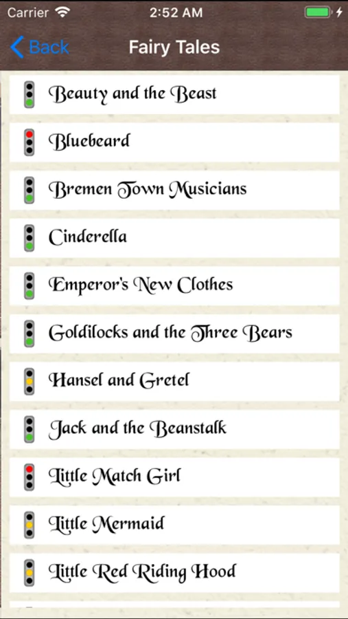 This app has the option to change the language to Spanish through the main menu, providing a slightly different selection of stories.