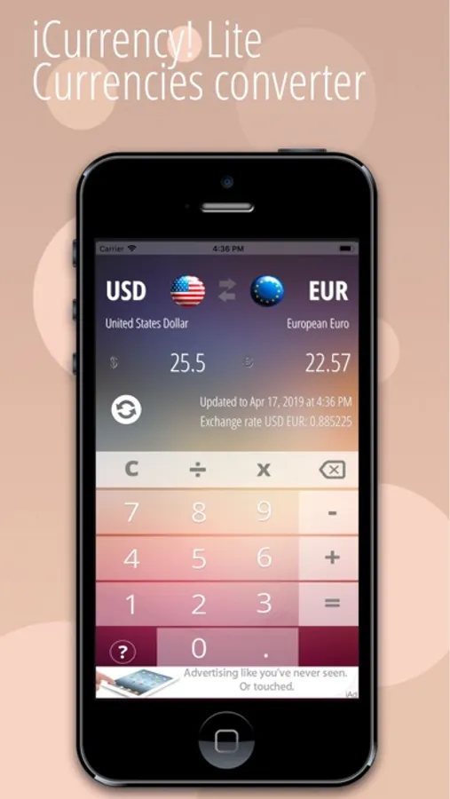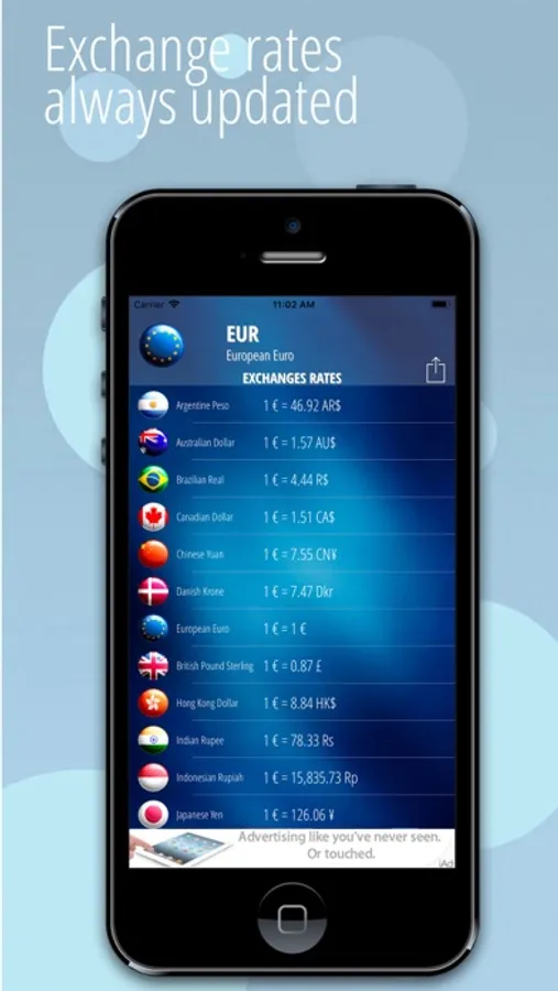 iCurrency!Lite take also advantage from a fantastic user interface with the possibility to change between 3 backgrounds.