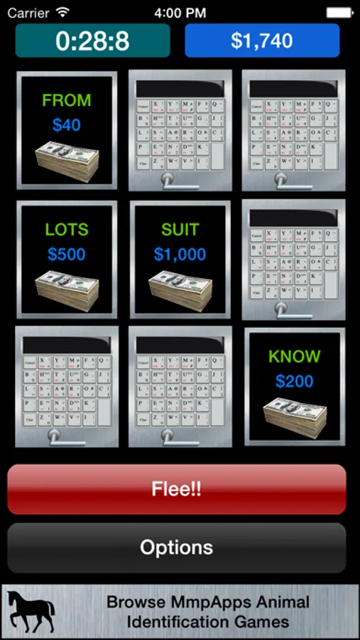 You can change the difficulty by choosing a password length. Longer passwords give more money.