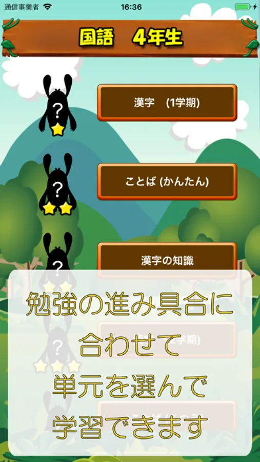 小学校4年生の国語アプリの決定版!小学校での学習の進み具合に合わせて単元を選択し、手軽に、効果的に復習することができます。サクサクと4択で問題を解いていくことができます。(iPad、iPhoneの両方に対応)