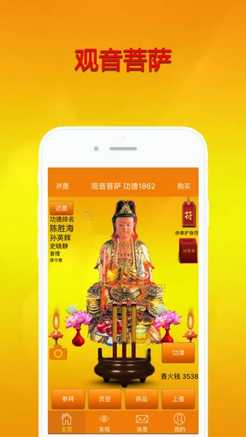 通过《南无观世音菩萨》请来观音菩萨后,每天可以参拜和烧香对观音菩萨进行供奉,提高功德。这是一个祈福寄托心灵愿望的容器。在嘈杂喧嚣里,总有一个时间,我们希望静静地独处一小会儿,与自己对话,留下内心的一点愿望,等待时间给我们的回馈。