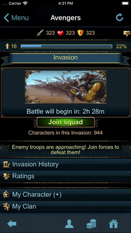 It's interesting and vivid, a battle between heroes and monsters! During the early levels, your character gets access to a single game location and the Arena; the battles take place in the Dark Forest - with wolves, in the Cave - with werewolves, at the Camp - with orcs.