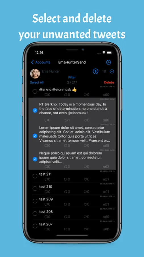 You no longer need to scroll through your timeline to find old tweets. Simply input the desired date or keyword, and Tweet Cleaning will display the relevant tweets.