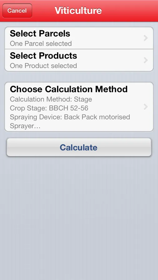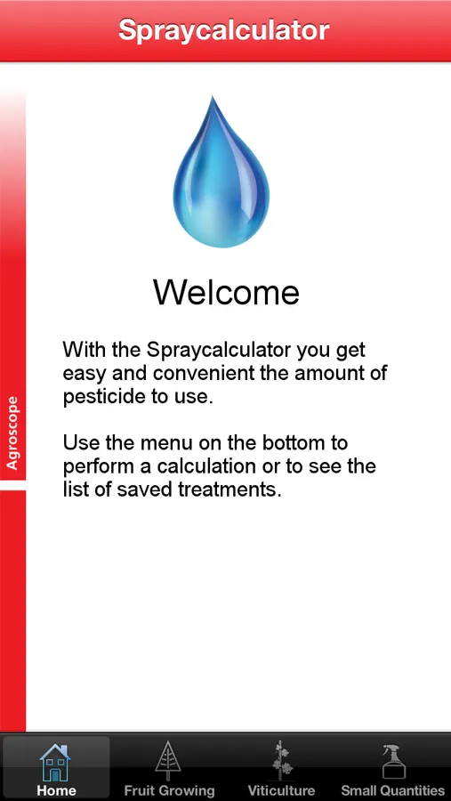 The App offers Spray-Calculations for Viticulture, Fruit Growing and Berries.