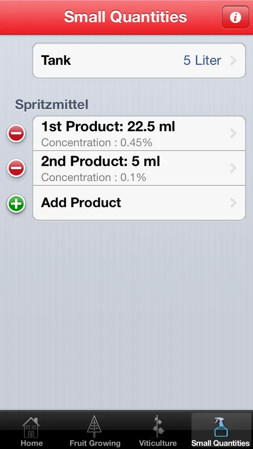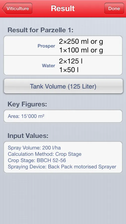 It is rare that one completes a spraying session with only one full tank. The advantage of the app lies in the possibility of inputting the tank size and obtaining the number of full tanks plus the remaining amount itemised. The spray agent subset is listed separately for each individual tankful. This makes filling the tank easier for farmers.