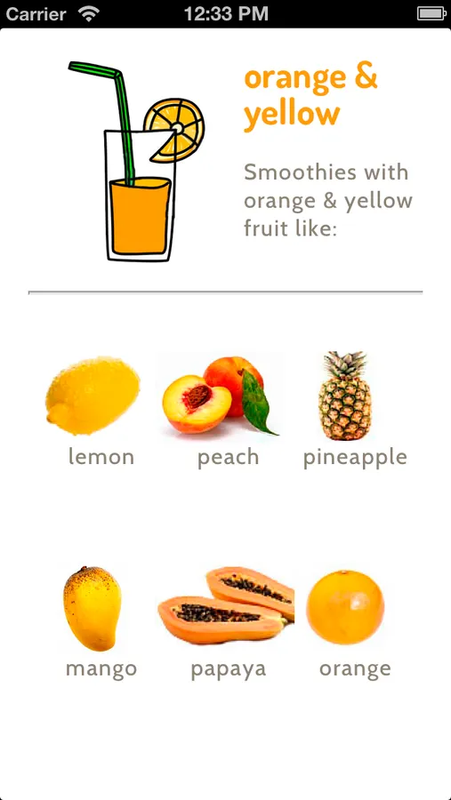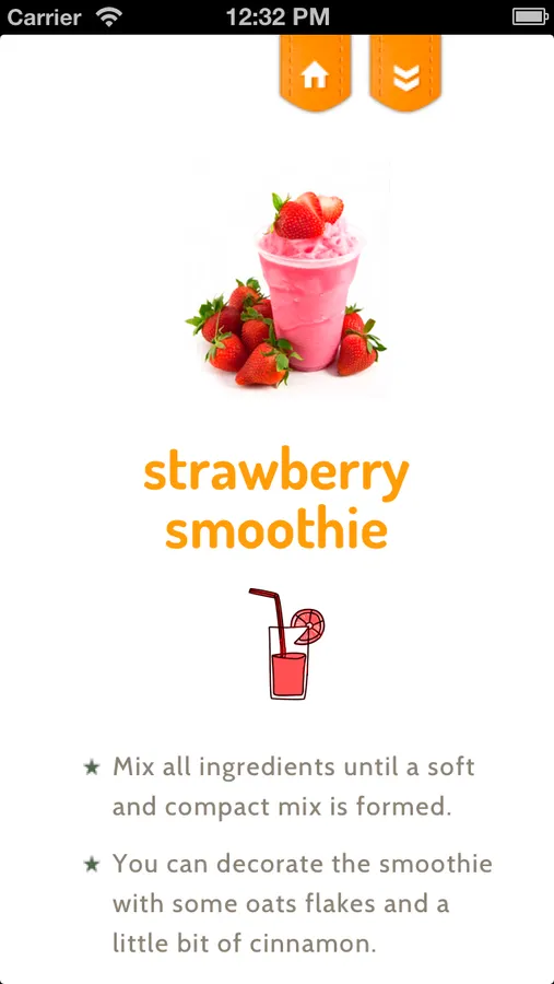 For each smoothie the app describes clearly how to prepare the smoothie, its ingredients, its nutritional values, RDI and the diseases and illnesses each smoothie can help prevent.