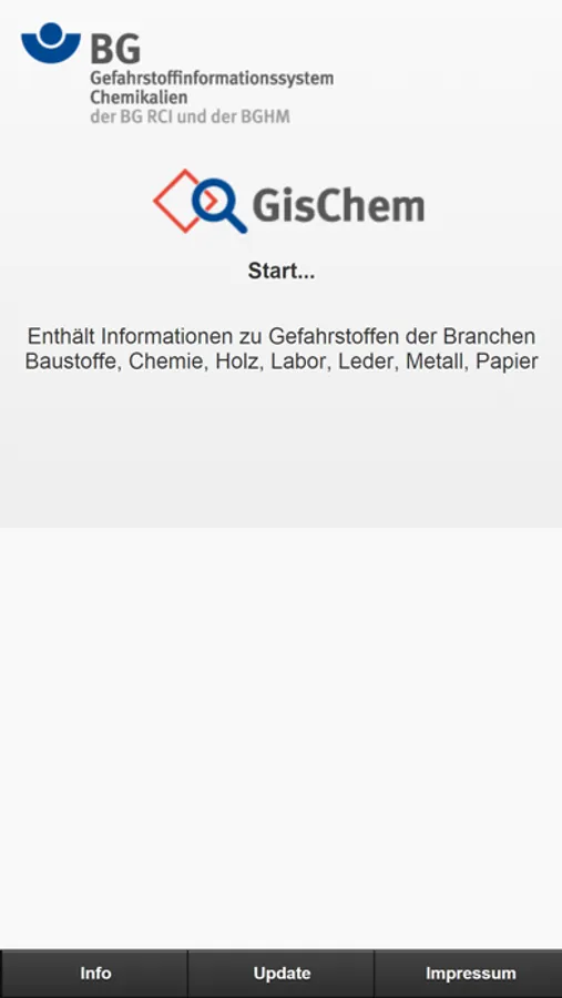 Die GisChem-App wird erstellt und gepflegt von GisChem in einer Kooperation der Berufsgenossenschaft Rohstoffe und chemische Industrie, BG RCI, und der Berufsgenossenschaft Holz und Metall, BGHM. Rechtlicher Ansprechpartner ist die BG RCI.