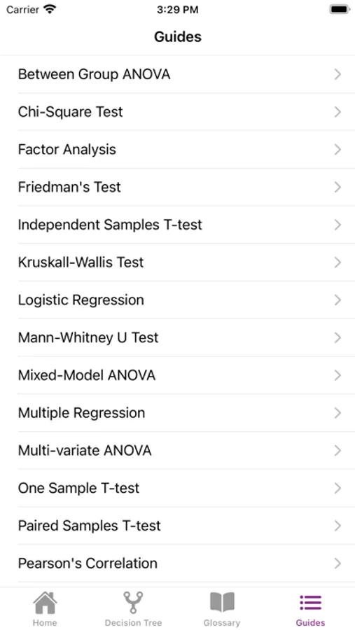 StatsGuru for SPSS is aimed at students learning about statistics and contains information on a comprehensive list of typical statistical tests that college or university level students may be expected to know.
