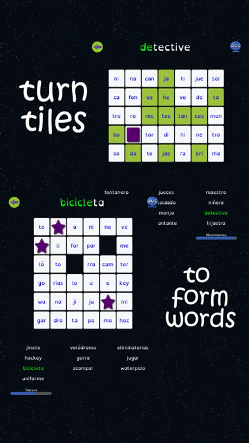 Sopa de Sílabas uses a unique memory card game and word search style game, that challenges players to form words by searching for syllables. Each of the 27 levels in Sopa de Sílabas provides increasing challenges to players.