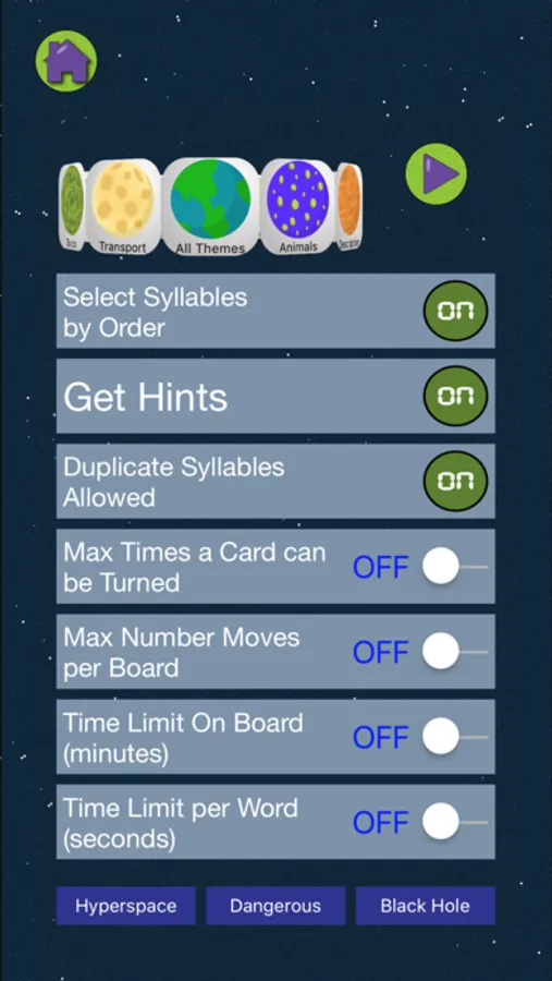 * Update to the full version and access over 3000 words and choose from 14 themes