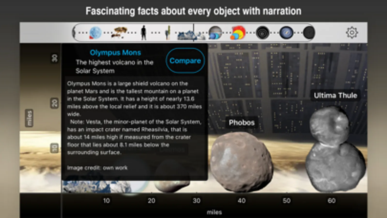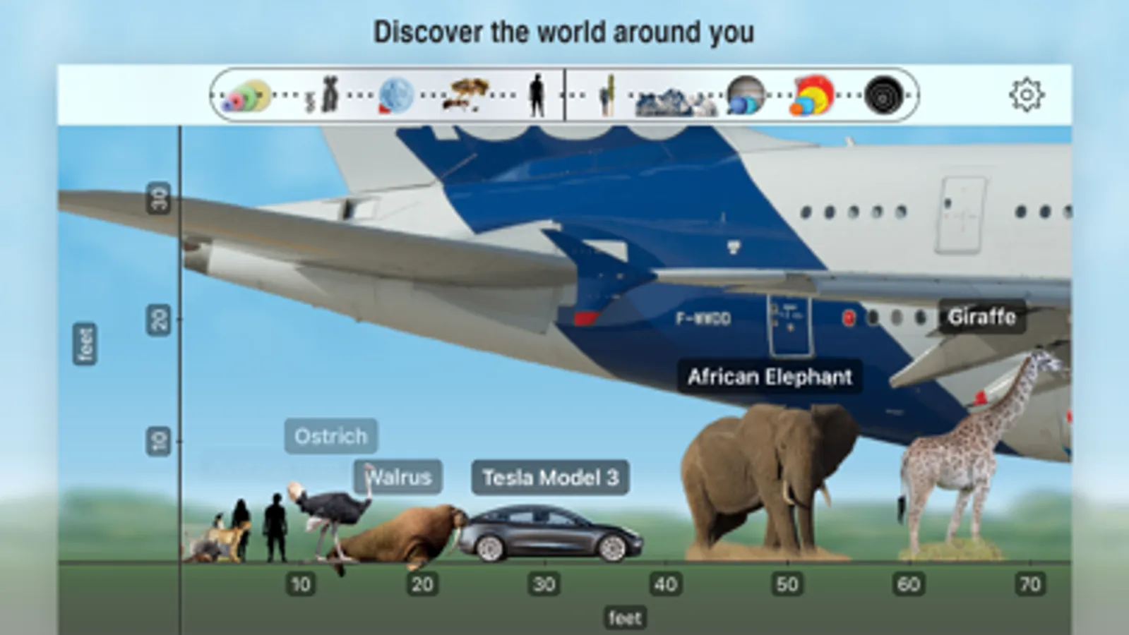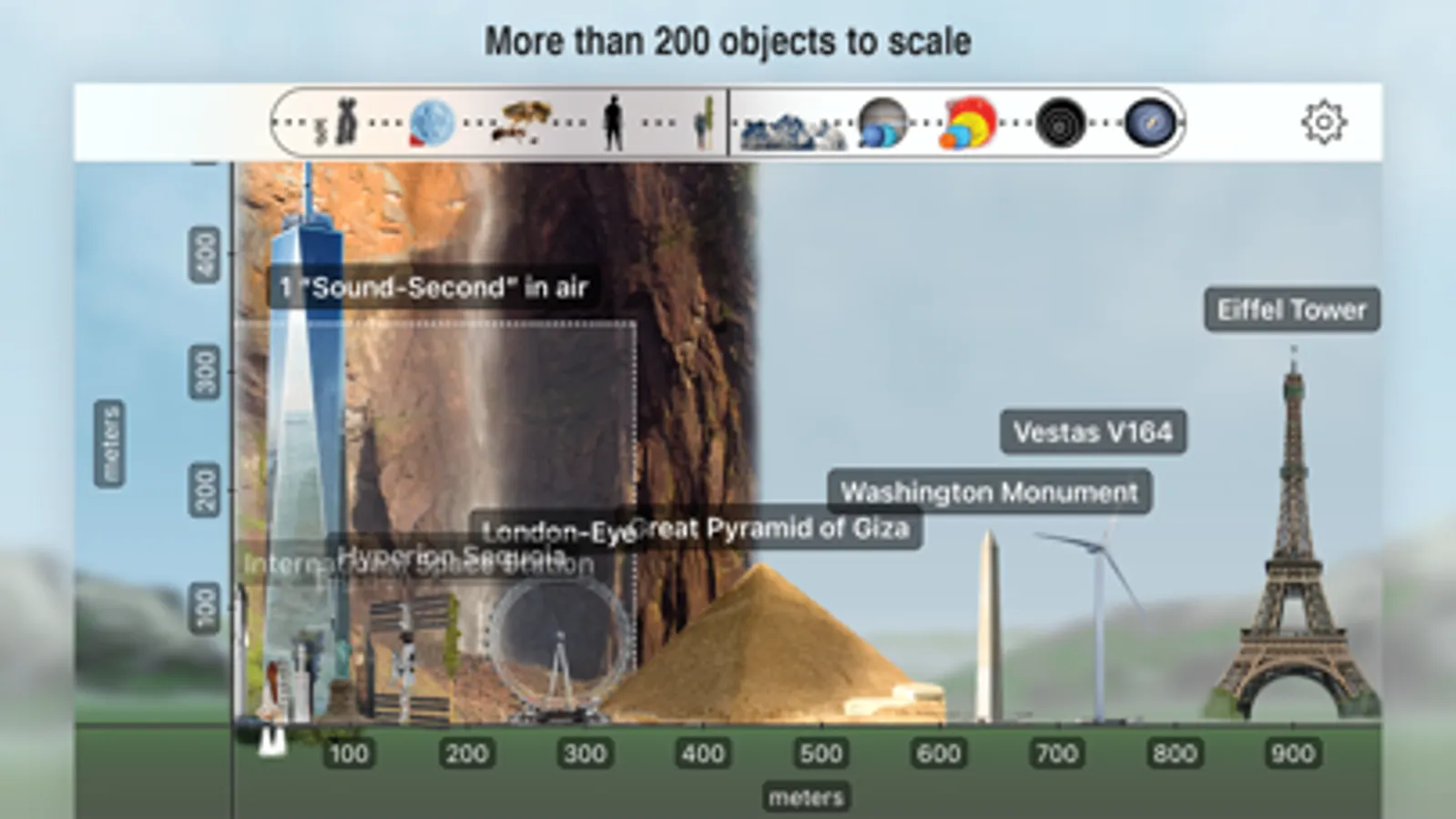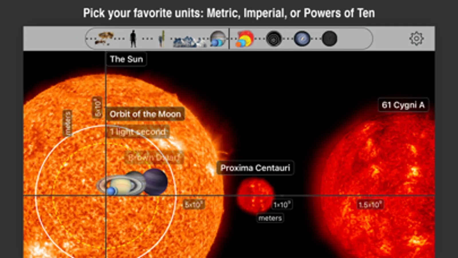 Learn about sizes, distances, and units of measurement, both metric and imperial, intuitively. Have fun comparing any two objects; this is the best way to comprehend the size of the objects that are beyond our vision. It's breathtaking for all ages and experience levels!
