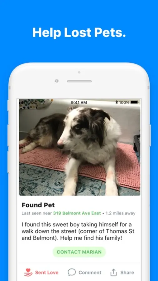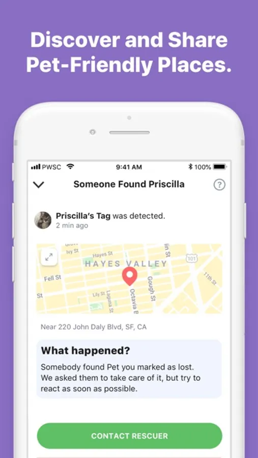 Most lost pets don’t go far—that’s why it’s crucial to rally your community. Pawscout’s App makes it easy to enlist local pet lovers in the search, and our Bluetooth-enabled Tag (optional) alerts users when a lost pet is nearby. A detailed medical profile helps pet heroes care for your furry BFF until you can be reunited.