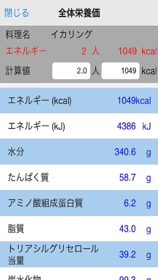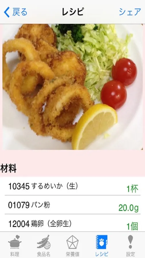 ■「料理の栄養価計算」「レシピの登録」「食品の栄養成分値検索」が可能