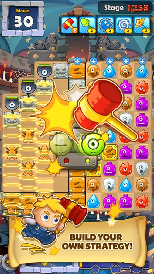 Match same colored monsters to save the gingerbread cookie friends! Enjoy each and every stage with entertaining challenges.