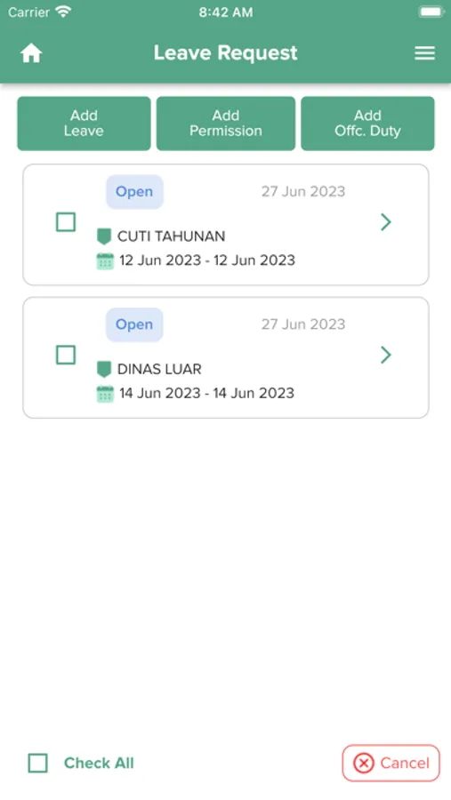 The purpose of the application is that the employee can file a leave request or permission either for personal or work purposes through mobile devices.