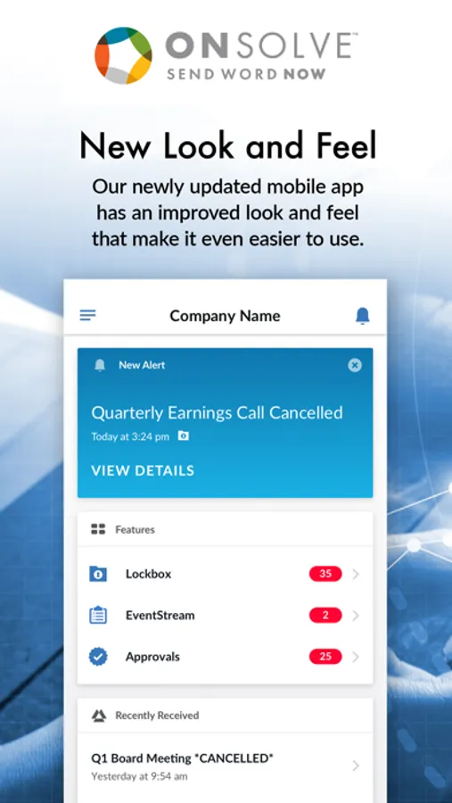 The powerful, next-generation mobile app for critical communications incorporates a variety of impressive collaboration tools, now with a new look and feel. The OnSolve Send Word Now mobile is a companion app of the Send Word Now desktop alerting solution that provides tools for organizations of any size to send and receive alerts company-wide.