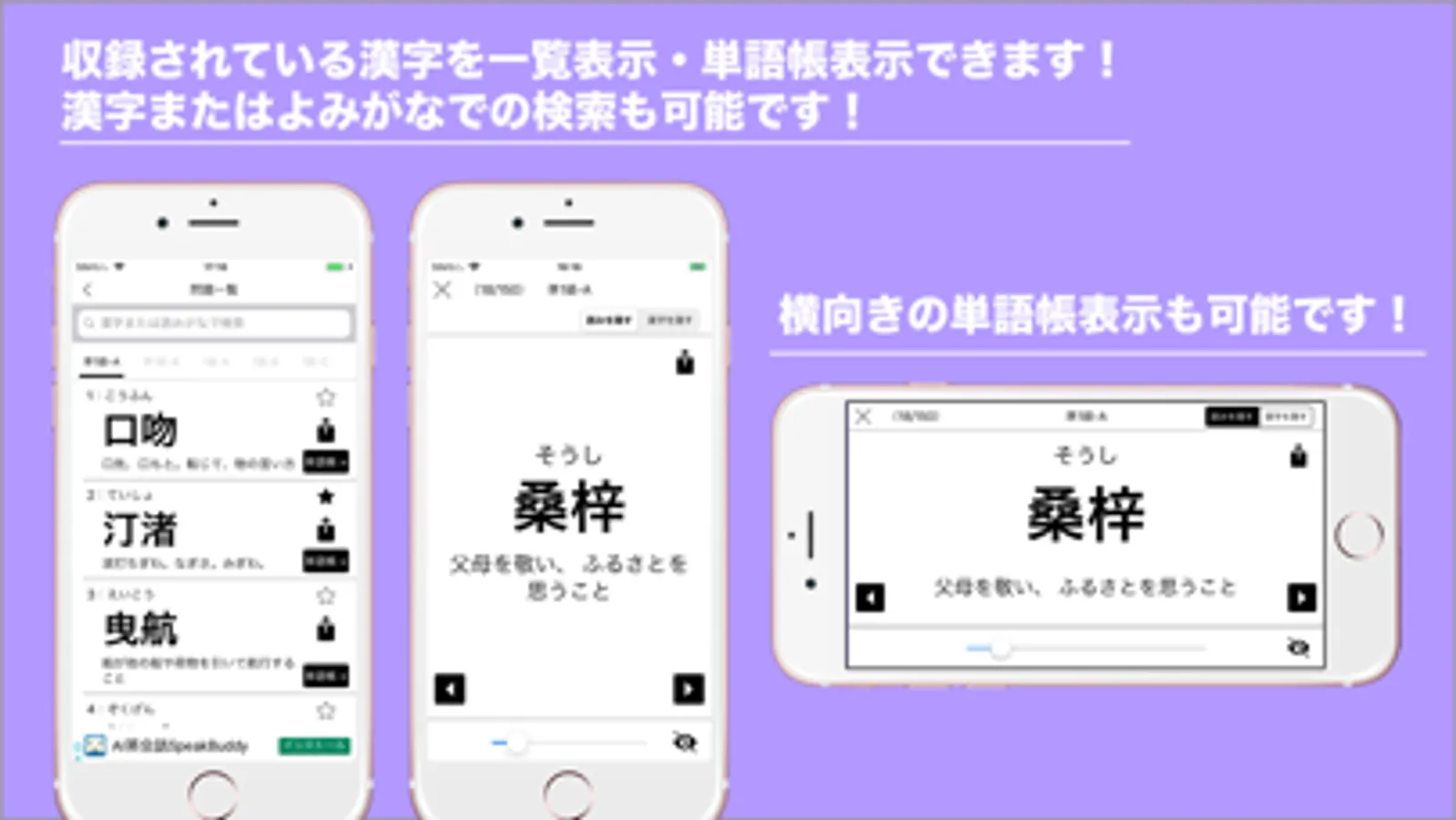 漢検対策に使える本格派漢字読みがな学習アプリです!