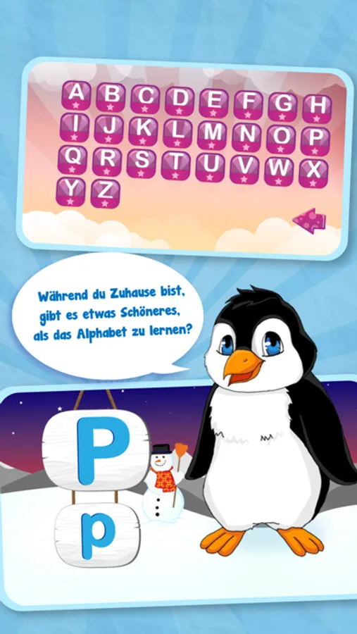 Die Anwendung bietet eine interaktive Lernmöglichkeit, die es Kindern leichter machen soll, die 26 Buchstaben des deutschen Alphabetes mit Hilfe von Illustrationen und attraktiver Erzählung zu lernen.