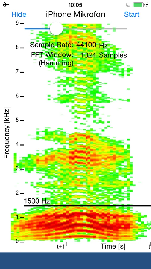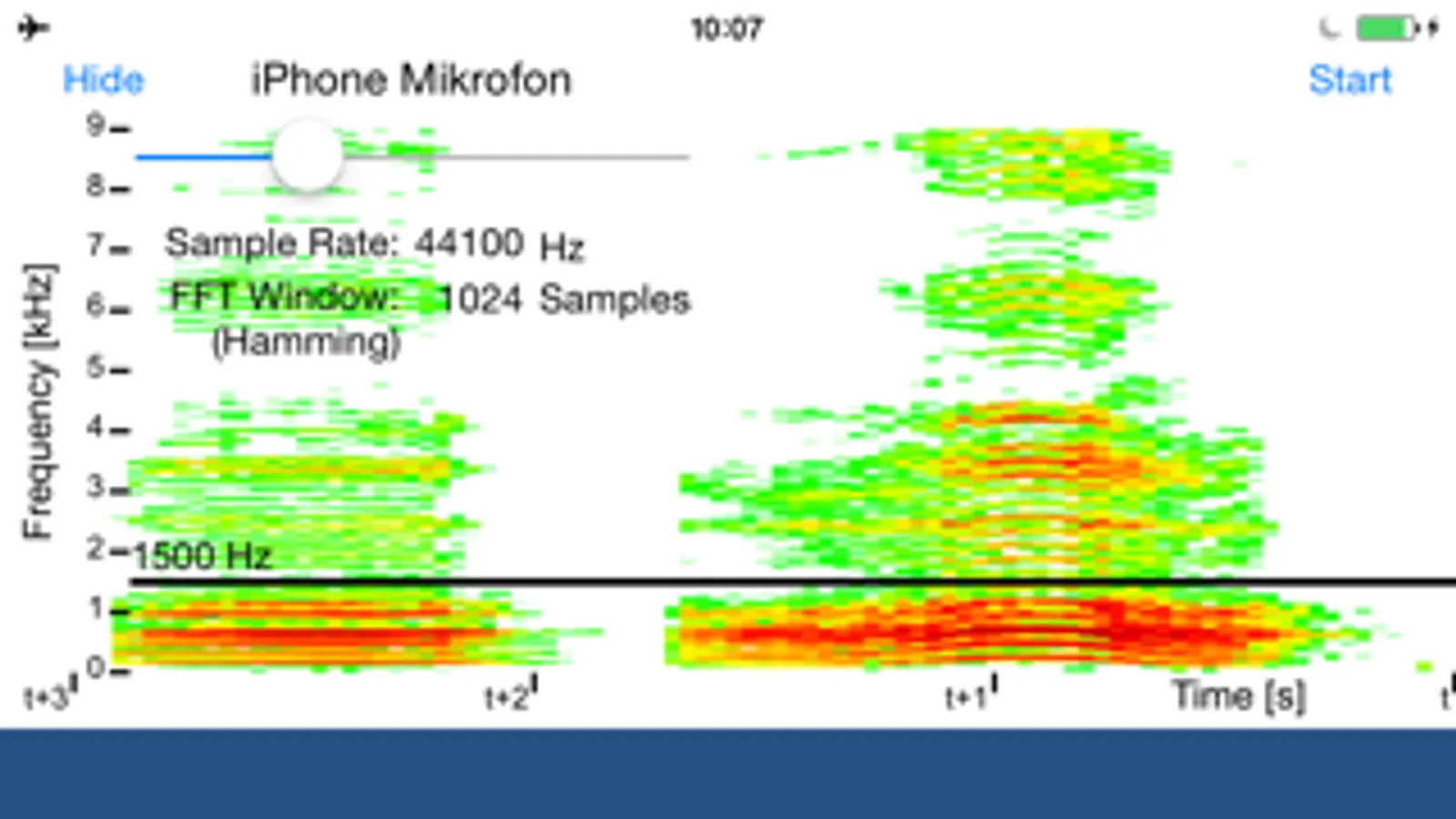 Spectro Real shows a frequency spectrogram over time and can be used for any audio signal, especially for voice signal analysis. Look up harmonics and formats of human voice as well as articulation and voice quality. It is also a nice biofeedback for speech and voice and offers a movable frequency line.