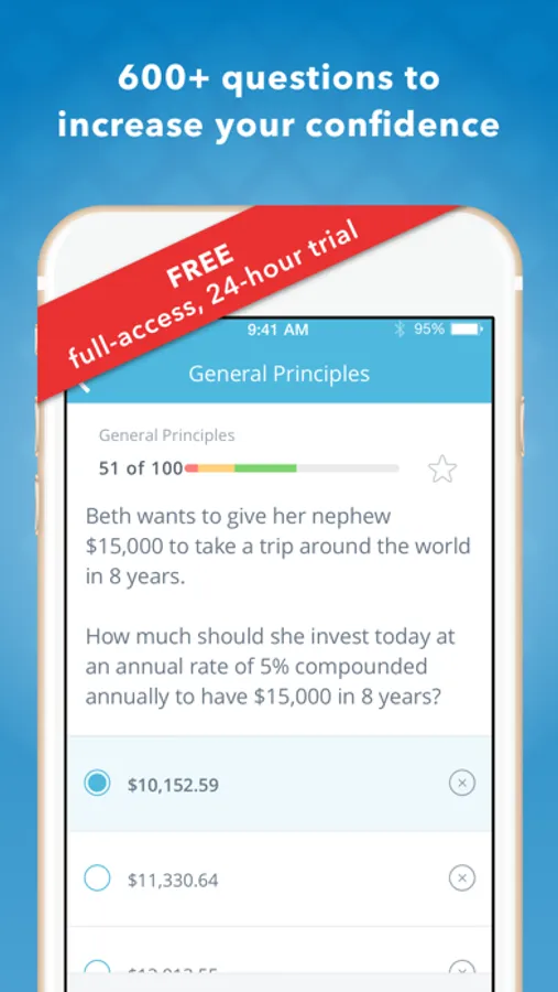 We have provided a limited free version of the app that you can try before deciding to upgrade. This version includes a limited amount of practice questions and basic progress metrics.