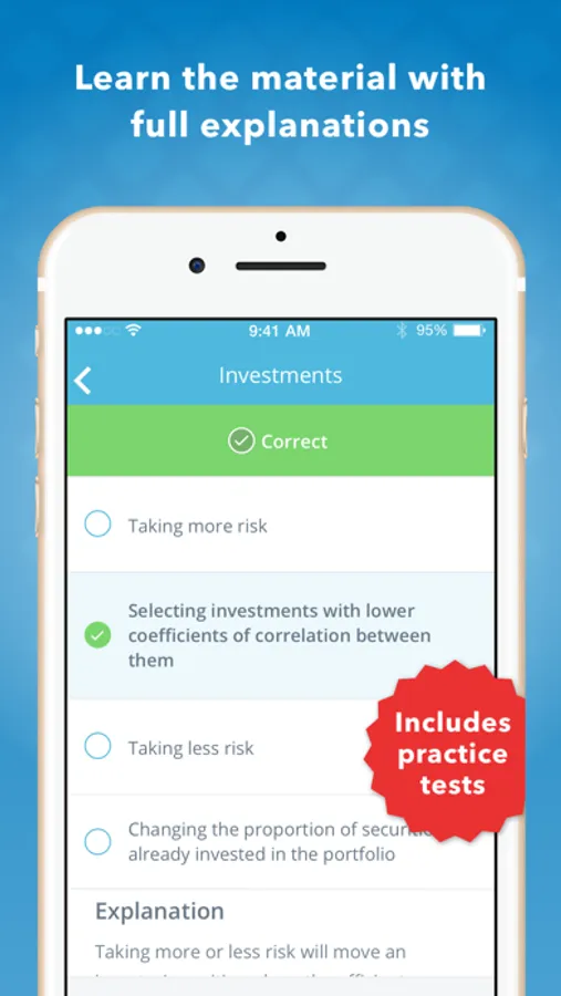 Upgrade to the Standard Version with a one time, in-app purchase that includes access to additional practice questions, tough quiz questions, must-know terminology and detailed progress metrics.