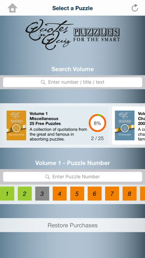 QUOTES ’N QUIZ also comes in sets of 200 puzzles per volume, offered in the In-App Purchase section.