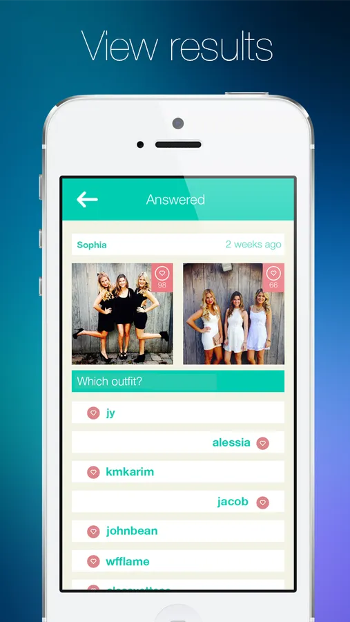 Snap two photos, add a question, and “pop” it to your friends or people nearby to see what they think.