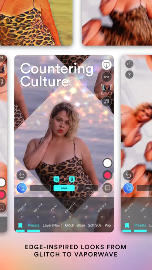 With the click of a button, recreate your aesthetic built from a layered mix of color and geometrical effects and filters.