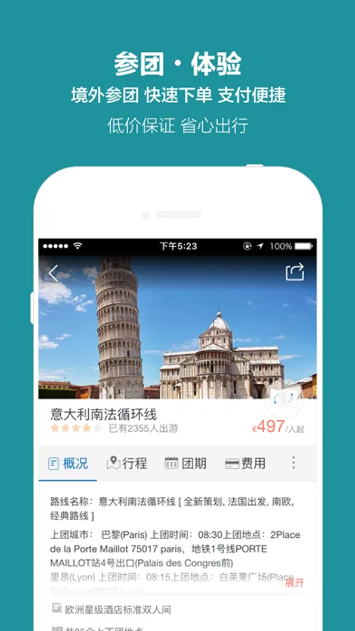 开元周游网站官方应用,通过该应用可以预订欧洲、美加、澳新、中东非等目的地当地游产品和当地玩乐体验类产品。