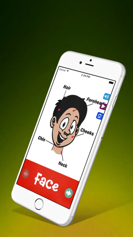 As there are 2 main features of this app. Learning feature facilitates kids to learn about the following parts of body:
