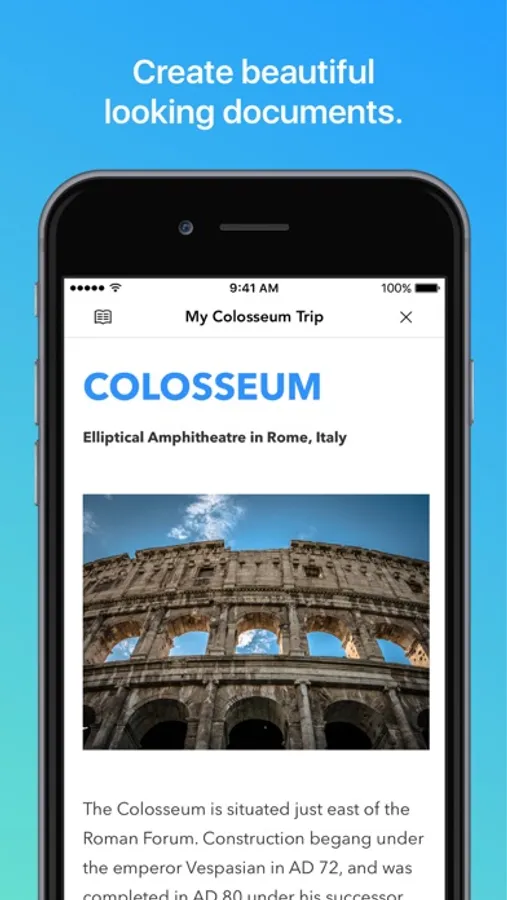 Simple, slick word processing app to create and edit documents, and collaborate on them with your friends. Sync docs across devices and access them wherever you go.