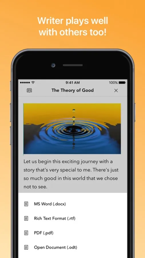 - Import and edit your existing Microsoft Word documents. Take stories off your world by exporting it as an MS Word, PDF, ODT, HTML, or TXT file.