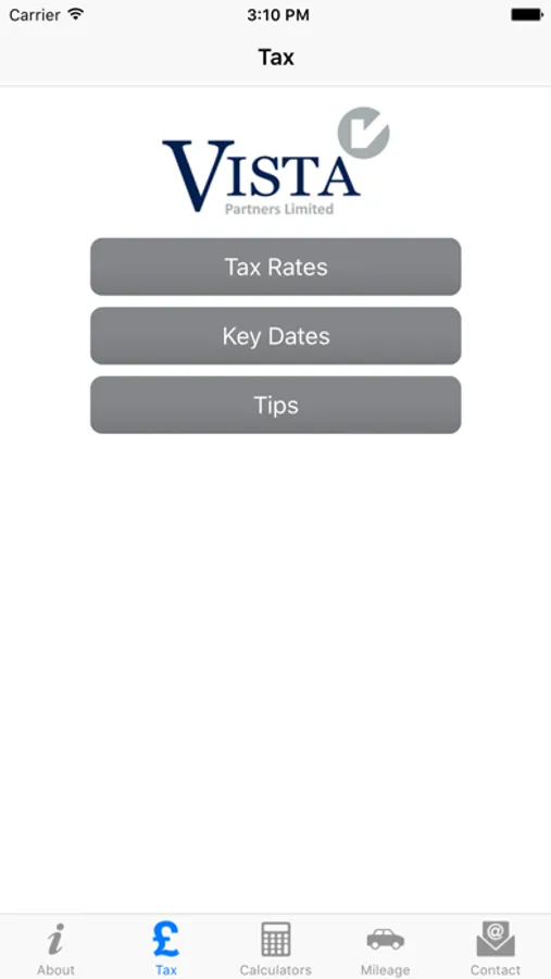 This app is brought to you and your business compliments of Vista Partners Ltd, Accountants and Chartered Tax Advisers; and is developed by Tax Apps Limited.