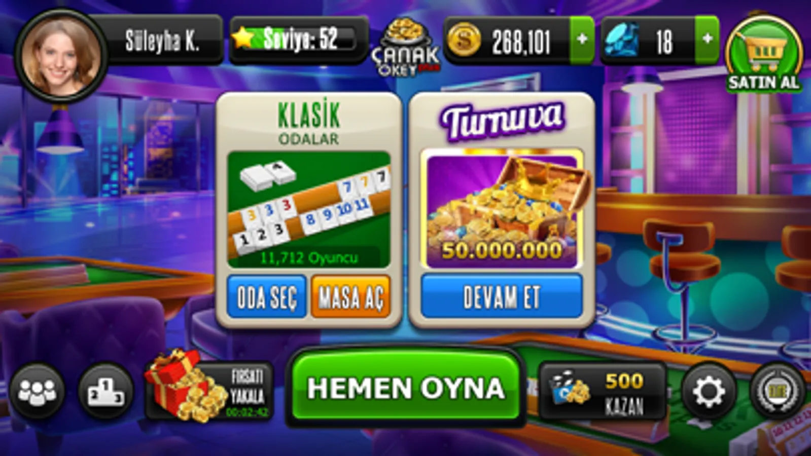 - You can easily start playing Okey with the most suitable rivals to your level by the ‘Play Now’ option within seconds.